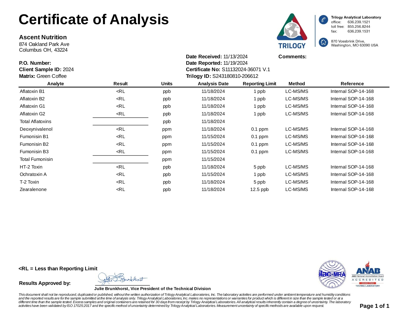 *See The Ascent Coffee Purity Results Analysis in the gallery above.